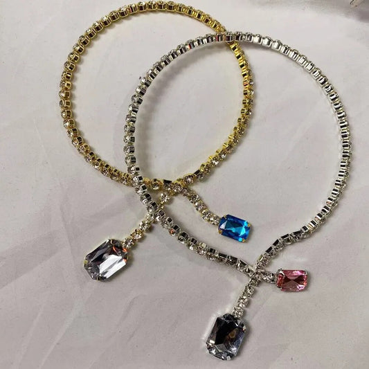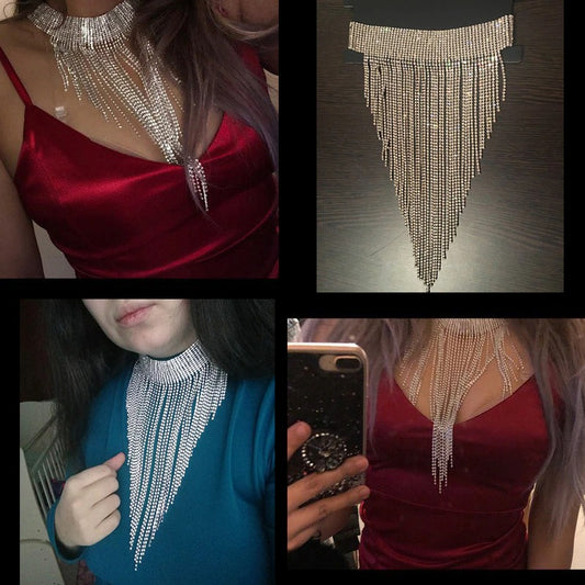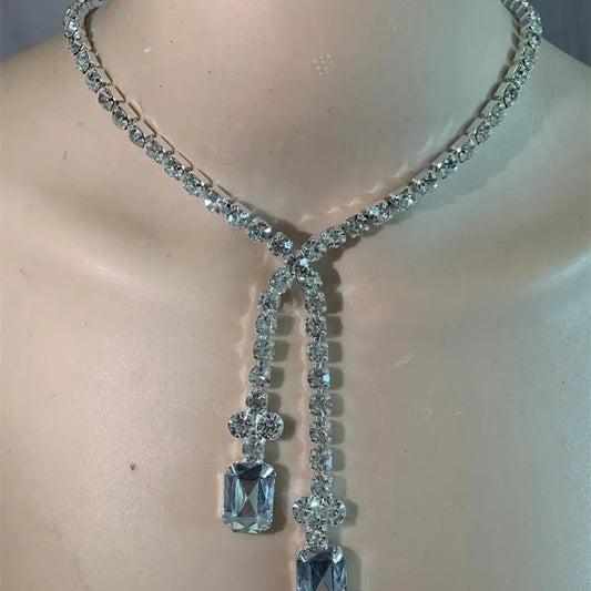 Rhinestone Tassel Tennis Chain Choker Necklace