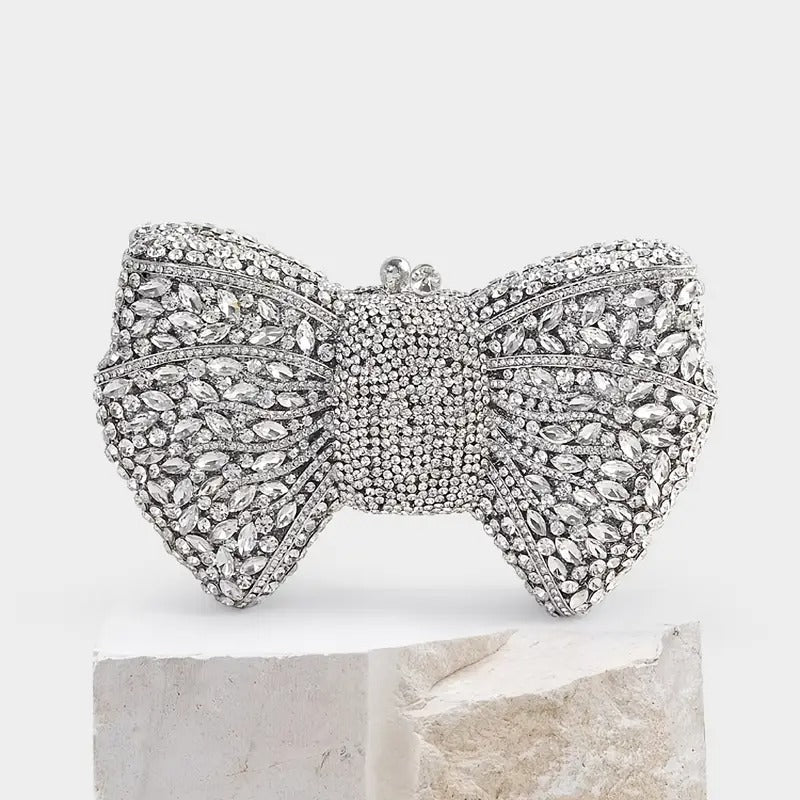 Radiant Silver Bow Clutch