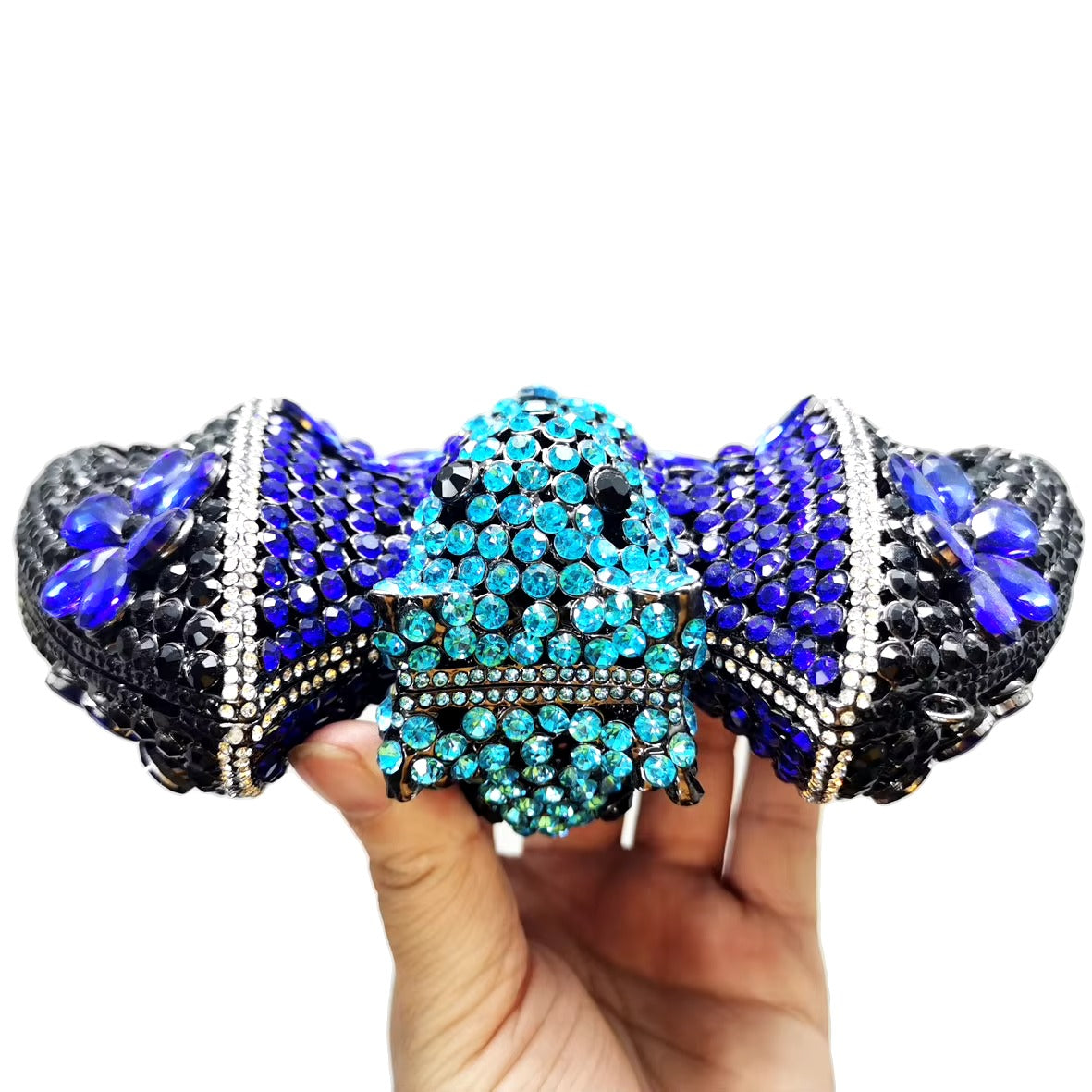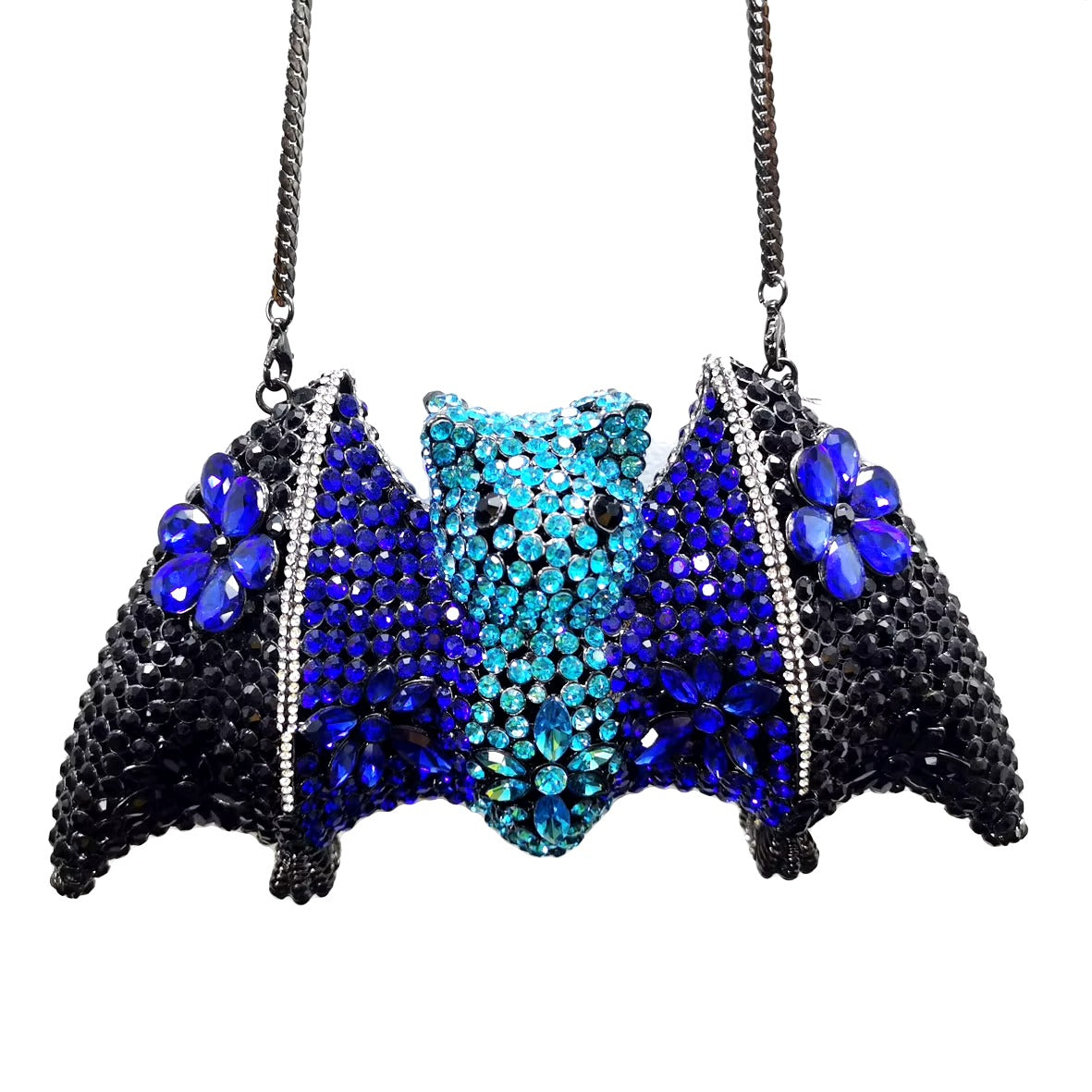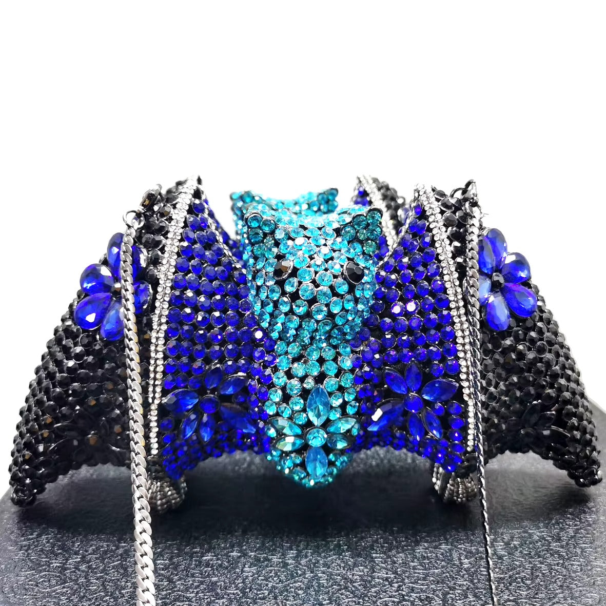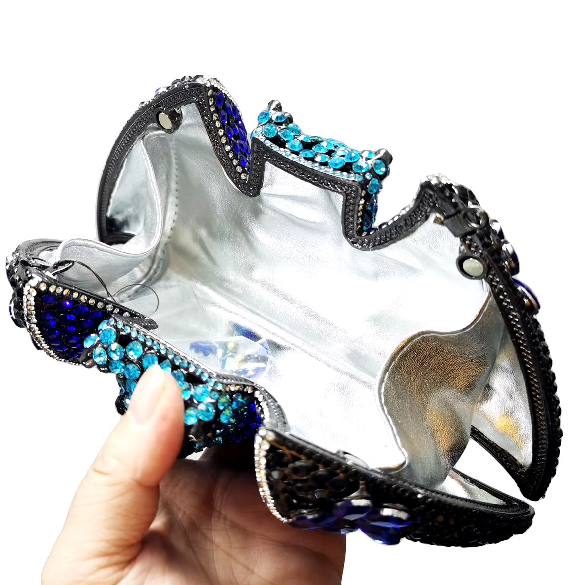 Unleash your inner night owl with the shimmer midnight blue Bat Clutch. Crafted in a bold royal blue, this unique clutch features a daring bat shape that combines elegance with a touch of the extraordinary. Perfect for those who love to make a statement, this accessory adds a dramatic flair to any evening ensemble.