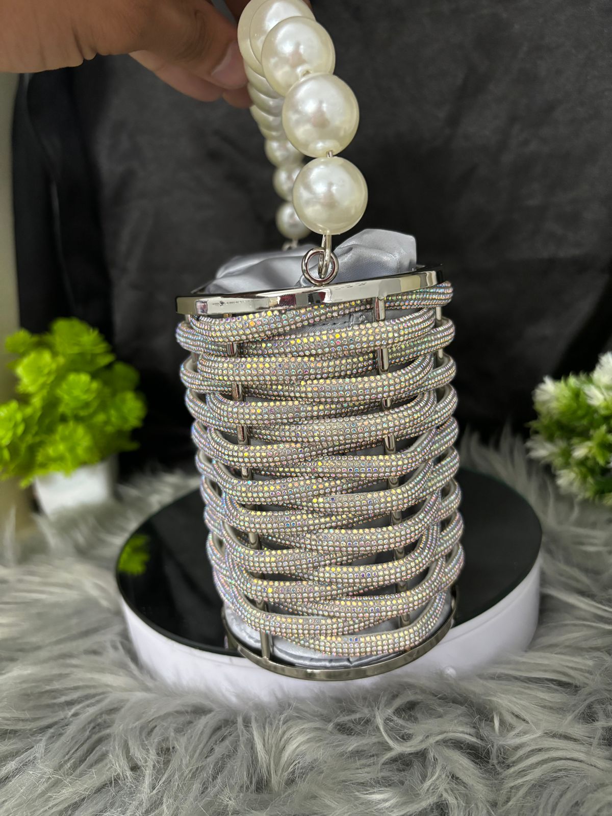 The Glamour Wave Bucket Bag brings together the best of elegance and contemporary design. The handbag showcases a wave-like pattern of rhinestones that wrap around the exterior, creating a dynamic and eye-catching texture. The handle, composed of oversized bucket, adds a touch of vintage luxury to this modern piece. Ideal for upscale gatherings or a night on the town, this bag combines functionality with high fashion, making it the perfect companion for any glamorous event.