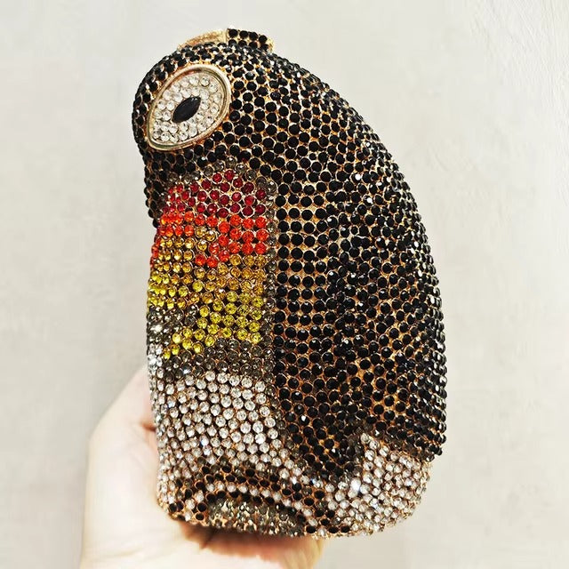 Dive into a world of whimsical elegance with the luxe penguin Clutch. Designed to capture hearts with its adorable penguin shape, this clutch is the perfect blend of fun and sophistication. Its distinctive design, complete with charming features and a sleek finish, makes it a standout accessory for any occasion.